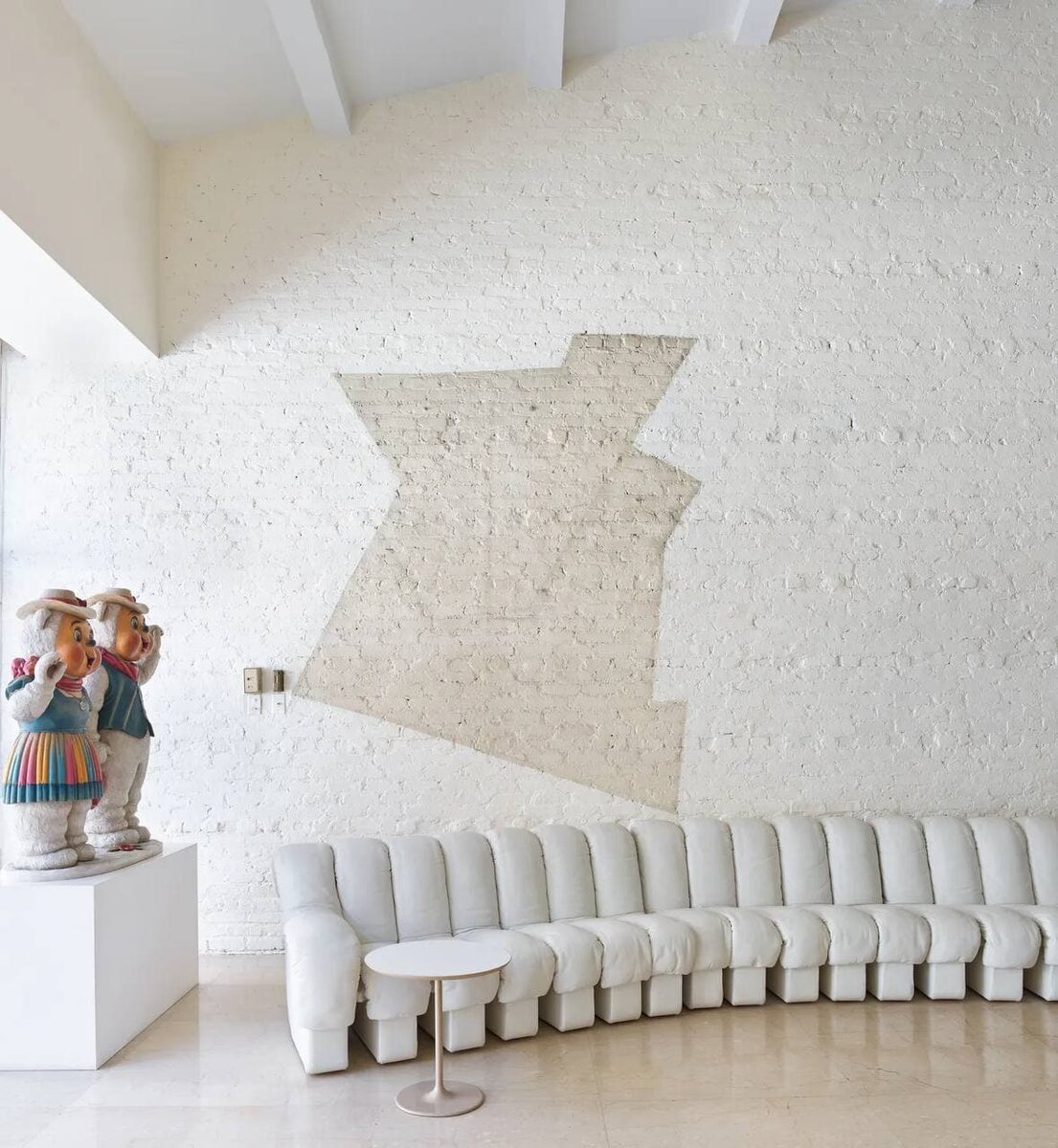 «У этого дома богатая история», — делится коллекционер произведений искусства Барбара Якобсон. Она живет в пятиэтажном доме, заполненном коллекцией картин, скульптур, фотографий и мебели с 1965 года. «После 56 лет подъемов и спусков по лестнице без серьезных происшествий, однажды я поспешила вниз, споткнулась и неудачно упала», — продолжает Барбара. После этого случая Барбара решила, что ей нужно найти способ безопасного перемещения между этажами. И тогда она установила в доме голландский подъемник Free Care, который модернизируется по мере увеличения ее предметов коллекционирования. На фото диван гусеничный диван 1972 года от Sede. Рядом на страже стоят Белые медведи от Jeff Koons (1988). Фото: Annie Schlechter Гостиная Весь ее дом менялся на протяжении всей жизни. Она вспоминает, как первого января посетила дом на Верхнем Ист-Сайде со своим бывшим мужем, покойным финансистом Джоном Якобсоном, как вошла в гостиную на первом этаже (сейчас здесь находится бар, спроектирова