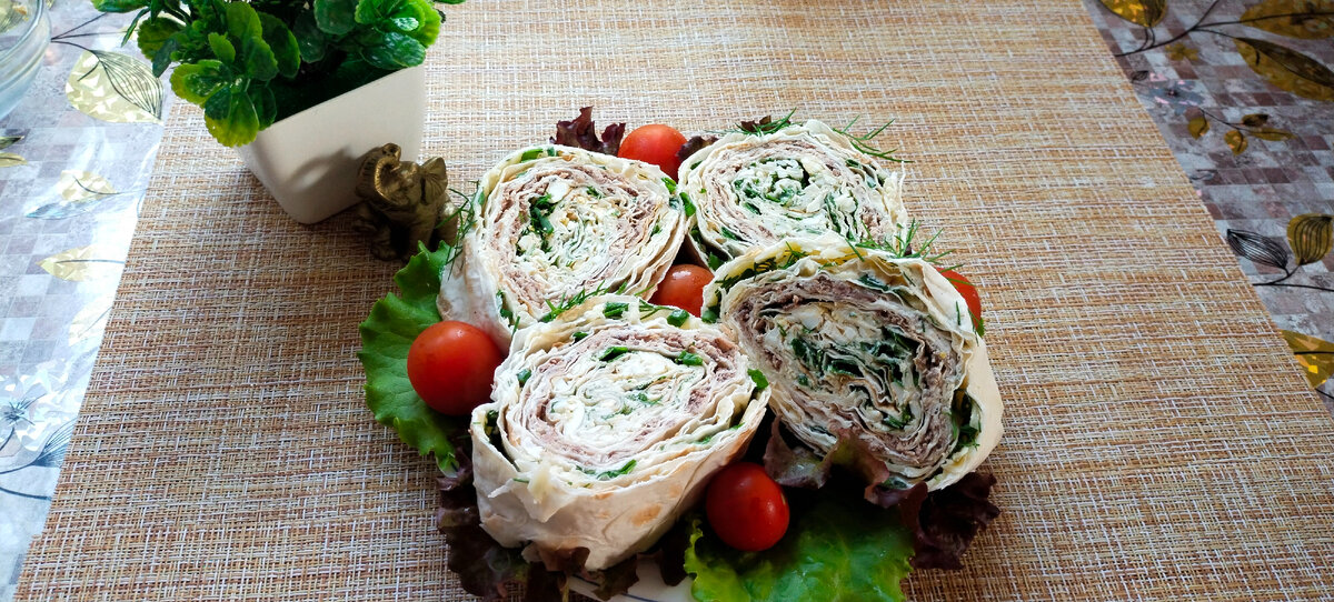 Для соуса смешиваем мягкий творожок с двумя желтками, горчицей, перцем и чесноком, немного солим и тщательно разминаем вилкой или блендером (наш пп майонез готов). Разложить лаваш. Смазать каждый лист майонезом. На один-натереть яйца, на второй-сыр, на третий-помятый вилкой тунец. Сверху каждый лист посыпать луком и укропом.