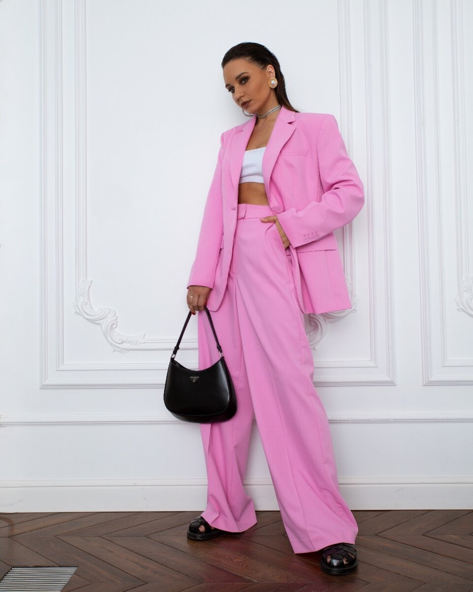 Очень нежный вариант, который можно обыграть оверсайз-пиджаком и открытыми босоножками.