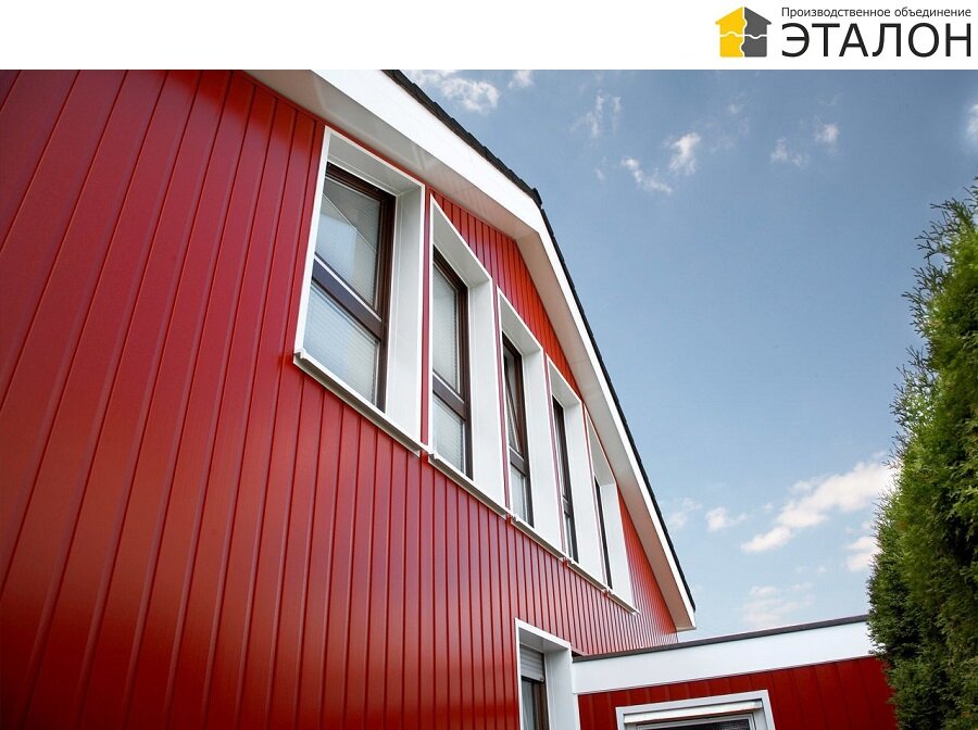 Остается присоединить оставшиеся доборные элементы, например, планки для визуального оформления угловых зон, стыков, оконных рам, дверных проемов и т.д. как видите, монтаж вентилируемого фасада из профнастила – несложная задача, реализуемая собственными силами. Главное, придерживаться рекомендаций и выбрать подходящий профлист.
