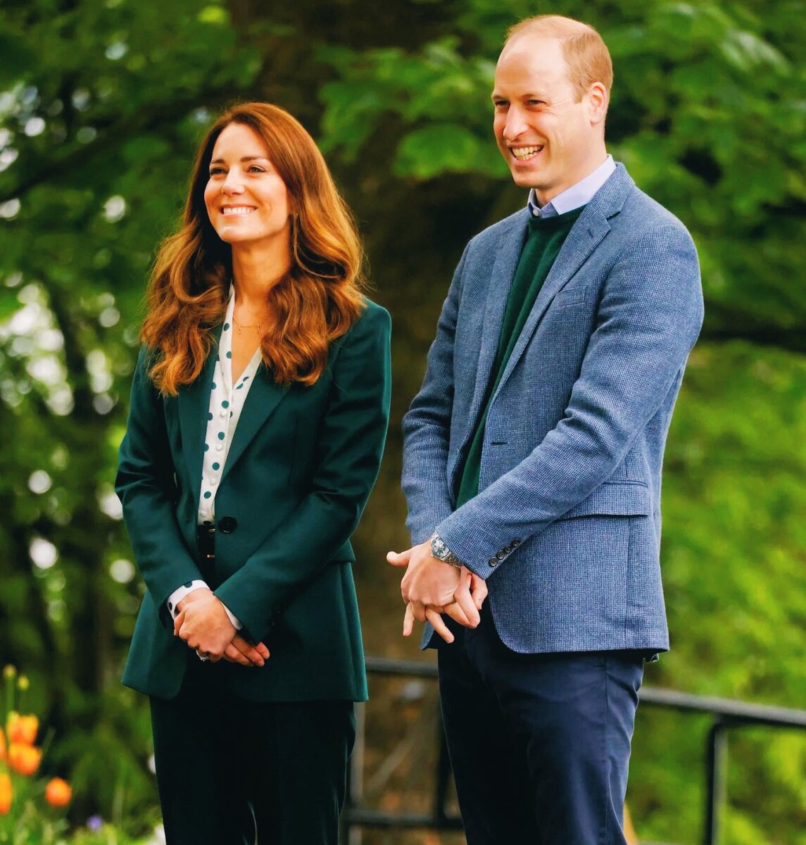 Герцог и герцогиня Кембриджские посетили в парк Starbank в Эдинбурге, чтобы узнать о работе благотворительной организации Fields in Trust, которая защищает зеленые насаждения в Эдинбурге. Это организация, близка сердцу принца Уильяма, взявшего на себя покровительство его покойного дедушки, герцога Эдинбургского в 2013 году. 27 мая - последний день герцогов Кембриджских по Шотландии. Они посетили ряд мероприятий. Уильям был одет в темно-синий костюм и джемпер. На Кейт был темно-зеленый блейзер от Massimo Dutti с брюками и блузка в горошек от Jigsaw. Дети герцога и герцогини Кембриджских, принц Джордж, принцесса Шарлотта и принц Луи, не сопровождали своих родителей. Они остались в Великобритании. На Кейт было колье с буквами «G», «C» и «L» - первые буквы имен ее детей. Супруги также познакомились с подростками, которые сажали подсолнухи, стремясь получить бронзовую награду герцога Эдинбургского. Кейт Миддлтон в садовых перчатках, помогала им сажать семена. Герцогиня стала соавтором са