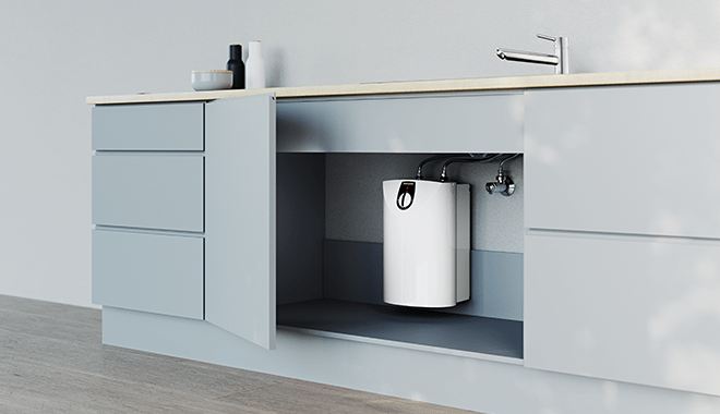В проточных приборах вода нагревается сразу же после того, как пользователь открыл кран, напрямую контактируя с мощным нагревательным элементом. Это компактные устройства, которые можно размещать на стене либо прятать под мойкой, если водонагреватель напорный. В зависимости от напряжения питания, проточные водонагреватели могут быть одно- и трехфазными на 220 В и 380 В, соответственно.
