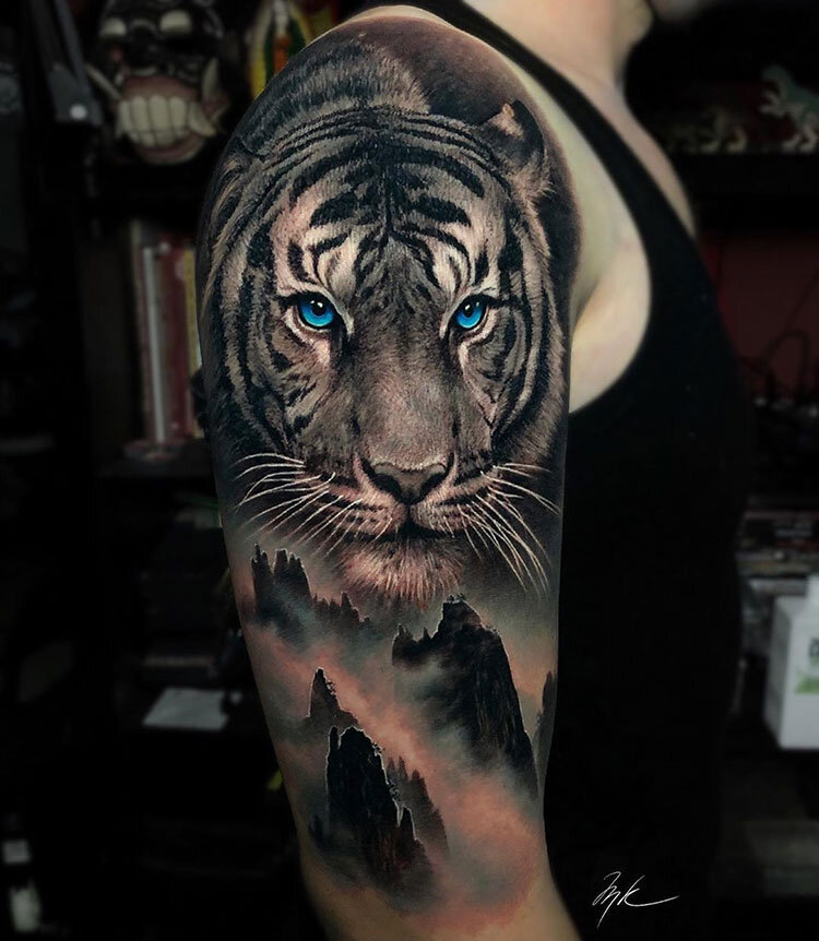 Тигр привлекает к себе вникание своим величием и грацией, благородством и яростью. Тигры занимают значимое место в культуре азиатских стран. Их считают предводителями животных, символом мощи и власти. Азиатские императоры носили одежды с изображением тигра, как знак богатства, лидерства и авторитета. Символизирует взрывной характер владельца тату. Выражает несогласие с мнением большинства. Показывает злость и ярость, скрытые внутри. Тигр – животное сильное, своенравное, независимое, но смелое и в нужных ситуациях свирепое, даже слишком жестокое. Потому и значение татуировок с его изображением весьма разнообразно. Такие рисунки могут нести в себе следующую смысловую нагрузку – скромность, чувство собственного достоинства, власть, силу, красоту. Все значения татуировки, на которой изображен тигр, так или иначе, говорят непосредственно о качествах животного. Привлекая к себе внимание, вызывая уважение окружающих своей яростью, но и благородством, величественностью, но и грацией, тигр ост