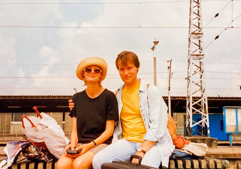 На перроне мы попросили зафиксировать этот момент наивысшего счастья случайного прохожего ( на бесценный для нас пленочный фотоаппарат!).