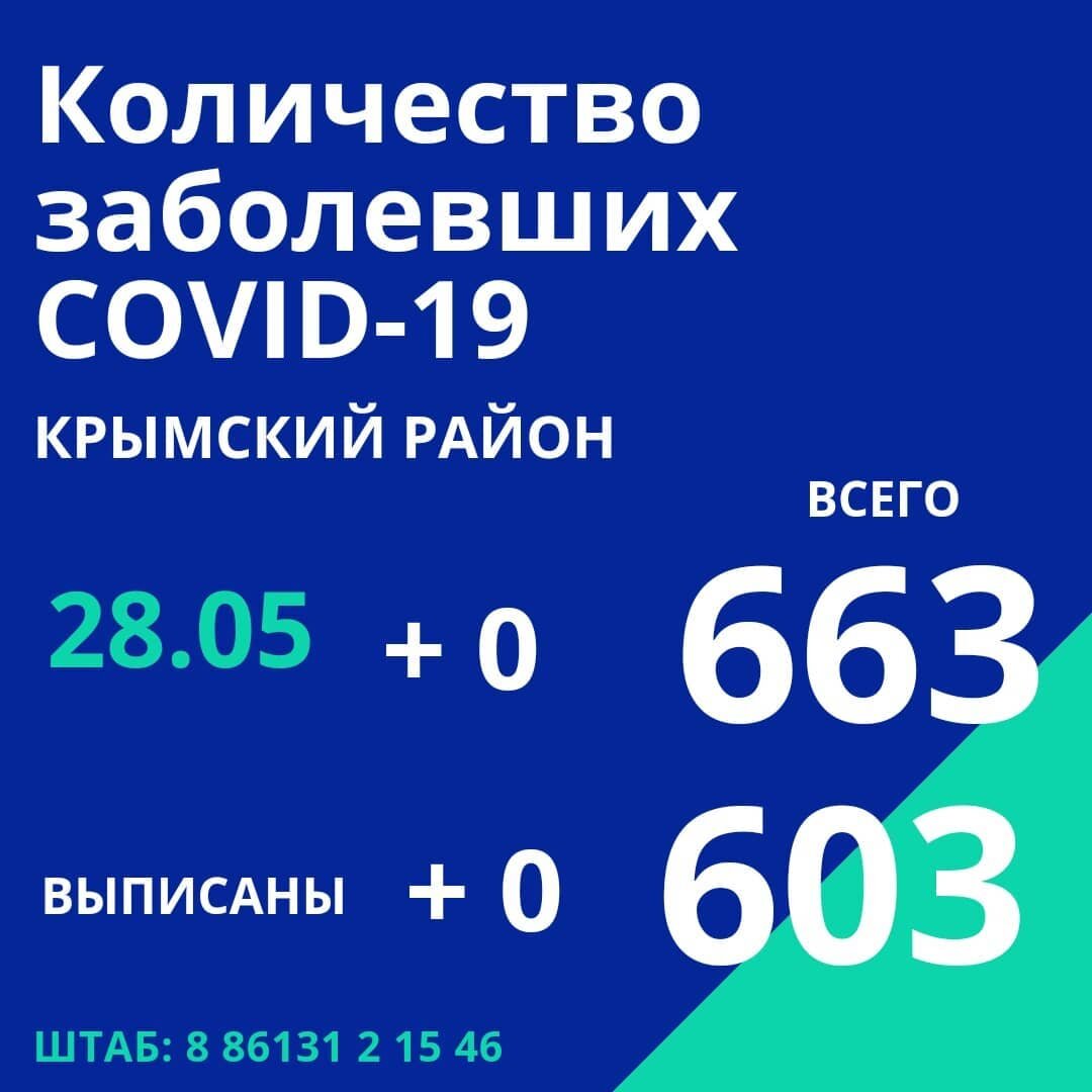 28 мая по информации оперативного штаба Краснодарского края в Крымском районе нет новых случаев заражения коронавирусной инфекцией.