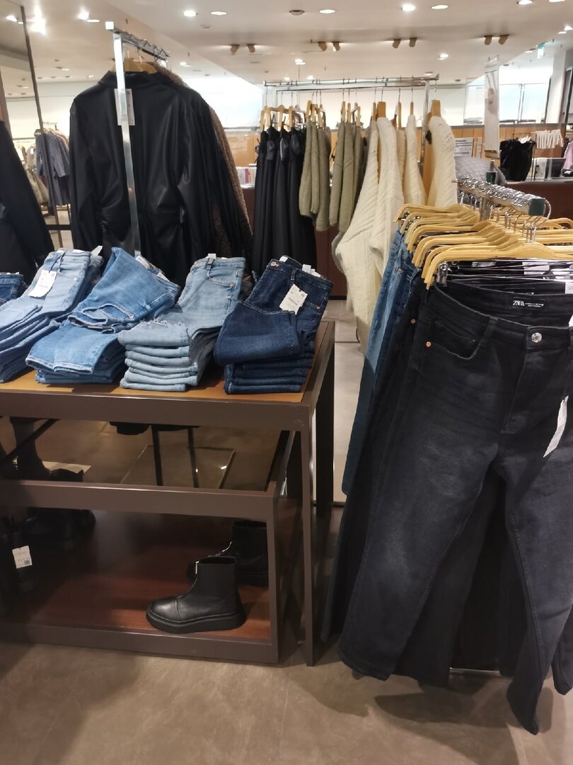 Всегда любила джинсы из "Зары", потому что этот магазин в числе первых подстраивается под новые модные веяния. Качество всегда было на высоте, а сами вещи смотрелись стильно и симпатично, но то ли с модой стало что-то не так, то ли просто в магазине появились непонятно почему такие вещи - сама модель неплохая, но именно материал и его цвет почему-то визуально ухудшили все. И это при условии, что рядом джинсы были в разы лучше и привлекательнее.