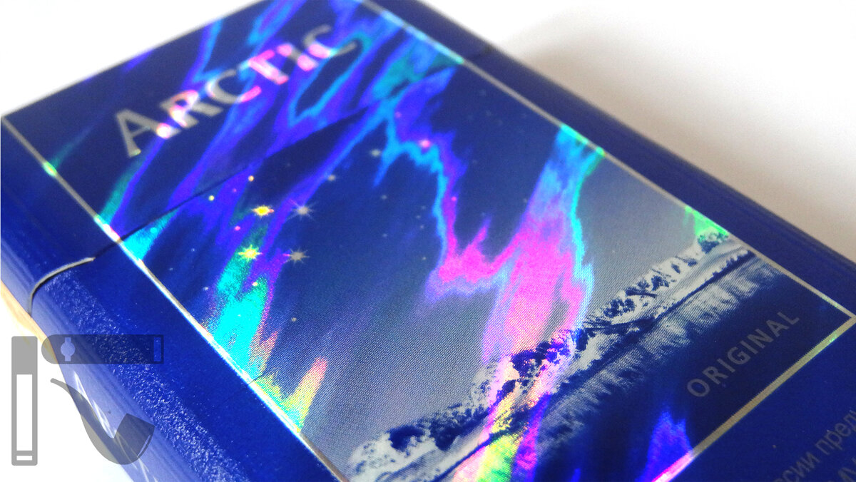 В первую очередь все сорта, а их было ровно три, отличались удивительной пачкой. Вернее её исполнением. Боковые части упаковки и часть лицевых были матовыми, а центральная композиция с изображением арктического пейзажа глянцевой, с использованием голографической плёнки. Arctic стал первым брендом, что использовал такой тип оформления. По крайней мере в России.