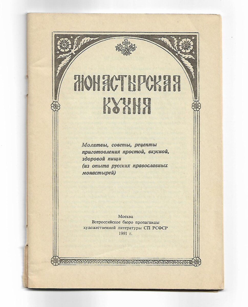 В небольшой книге собранные рецепты, основанные на опыте приготовления еды в русских православных монастырях. Молитвы перед трапезой и после, советы и наставления, описание постов и правил питания при их соблюдении. Паштет вологодский Половину стакана риса ошпарить кипятком. Отварить в подсоленной воде 0,5 кг. Белых грибо. Поджарить до хруста 2 средние головки репчатого лука. Смешать с черным молотым перцем и солью. Завести пресное тесто из муки, яиц, сметаны, тонко раскатать и обложить посуду с толстыми стенами, смазанную маслом. Наполнить форму начинкой, полить густым заваренным чаем (процеженным через ситечко). Поставить в духовку на 30-40 минут. Постные расстегаи Сделав из рыбы фарш, положить рубленого лука. Взять сдобного или простого кислого теста, раскатать в мизинец толщиной, положить начинку, а на начинку небольшой кусочек малосольной рыбы, сделать круглые пирожки, проделав наверху небольшое отверстие, поджарить на масле. Пасха красная Растопить докрасна три бутылки цельного м