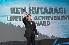 Кэн Кутараги, «отец PlayStation», в 2014 году на получении награды за пожизненные достижения, на Game Developers Choice Awards 2014