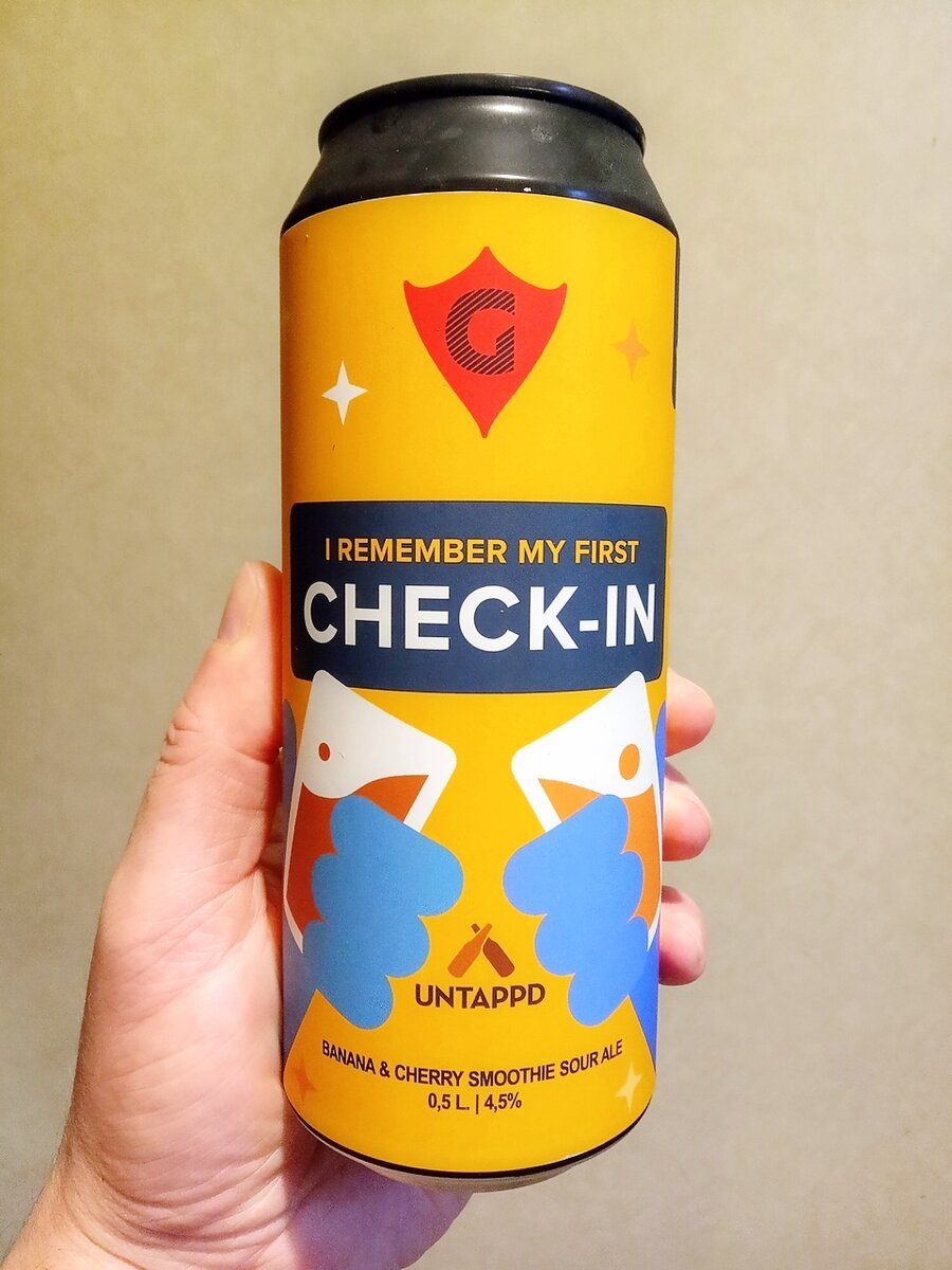 Наконец-то и к нам прилетели новосибирские гуси. В смысле, продукция новосибирской пивоварни GUSI. И сегодня попробуем пиво под названием I Remember My First Check-in. Для начала посмотрим, что нам расскажут пивовары о себе, ибо я с этой пивоварней до сих пор не имел дела: Уже 6 лет мы творим историю крафта в Сибири: обретаем новые знания, дарим эмоции, объединяем людей на наших фестивалях, разрушаем традиционные представления о пиве, выводим пивную культуру на новый уровень. Мы не признаем авторитетов, границ и шаблонов в использовании ингредиентов и их комбинациях, чтобы создать что-то особенное. В конце прошлого года у "тапка" был десятилетний юбилей, так что по такому поводу многие мировые крафтовые пивоварни сварили пиво под названием I Remember My First Check-in. Не стали исключением и новосибирцы: Результат международной коллаборации с сетью Untappd, которая отмечает 10-летний юбилей.