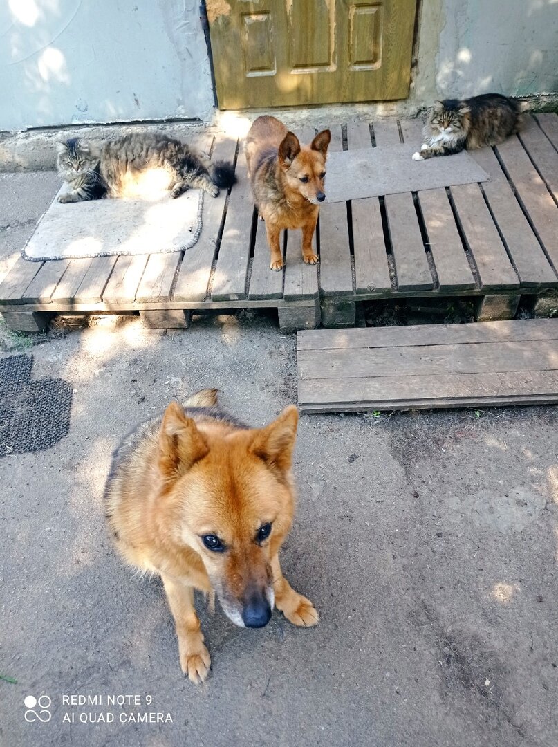 В последнее время тяжелее всех пришлось Эльзе из сельского мини-приюта Ирины С. после стерилизации. Она наверное немного себя разгрызла после того, как ей наложили шов. Она была в течке, постоянно вылизывала, а тут тоже запах крови, и добралась до своих чуть ли внутренностей, извините за подробности, но когда она после наркоза уже ночью вырвала, выглядело все так как будто отходы куринные... Волонтер сама там чуть не рухнула. Вот после и мучалось, болело сильно, она себе под живот одеяло подкладывала. Ей сразу дали обезболивающее. Она выходила ненадолго на улицу и сразу в дом, пряталась от всех, чтобы не приставали, а в доме никто не ее трогает, хотя сейчас и Айсе не до неё, так немного покрутиться и бегом к щенку. Вообще наша Эльза свои привычки громить всё не бросила, ночью находит себе занятие, в три часа ночи пришлось убирать погром, а ещё разгрызла хозяйки тапки и колоши, всё в детстве! Даже веник принесла) Всё закончилось, кашу едят плохо, если ничего нет вкусненького, даже Шар
