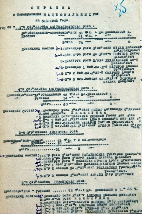 5.02.42г. было начато формирование национальных подразделений в 388-й стрелковой дивизии. Одновременно было начато формирование 2-го батальона 773-го полка в составе: 5-й азербайджанской, 6-й даргинской и 7-й грузинской рот (без пульроты). Командиром батальона был назначен ст. л-т Шавгулидзе [20].