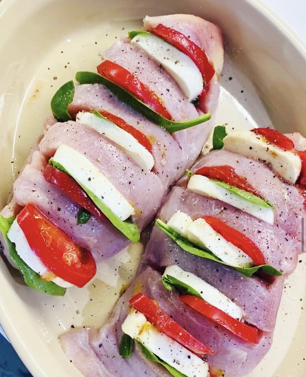 Рада приветствовать вас на канале Юли Костюшкиной. Сегодня приготовим сытный, быстрый и абсолютно ППшный обед или ужин. В филе индейки или курицы прорезаем кармашки, чтобы в них поместились кусочек помидора, моцарелы и листик шпината, солим-перчим. Отдельно, лучше в блендере, перемалываем пучок петрушки без ножек-горсть листьев шпината-горсть листьев базилика, 2-3 зубчика чеснока- 3 ст.л. оливкового масла и горсть кедровых орешков. Поливаем этим соусом индейку, сверху я присыпала тертым пармезаном( просто дома был, но можно и без него) и отправляем в разогретую уже до 180 гр духовку, минут на 30-40. Время приготовления зависит от размера грудок! Если они небольшие, значит время меньше!!!!!! Вынимаем, едим, наслаждаемся,вспоминая любимую Италию🇮🇹🇮🇹🇮🇹🇮🇹🇮🇹 Buon Appetito, Ваша Юля Костюшкина