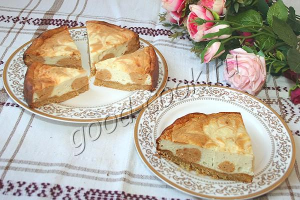 Хороший домашний пирог. Готовится не слишком сложно. Вкус очень приятный - в кисловатом творожном слое находятся более сладкие островки варёного сгущённого молока. На срезе получается интересный цветной рисунок.