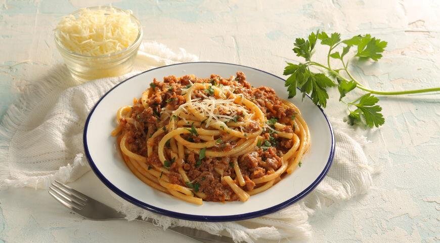 Макароны по-флотски Макароны по-флотски - классическое блюдо советской домашней кухни. Рецепт этого блюда появился примерно в 50-е годы XX века, и с тех пор оно стало одним из любимых в СССР. Простое, недорого, сытное, что еще нужно для популярности? Ах, да, вкус! Макароны по-флотски - очень вкусное блюдо, когда вы готовите его их хорошего мяса и правильных макарон. ИНГРЕДИЕНТЫ ПОШАГОВЫЙ РЕЦЕПТ ПРИГОТОВЛЕНИЯ Шаг 1 Отварить макароны согласно инструкции на упаковке. Шаг 2 Лук мелко нарезать, чеснок раздавить. В сковороде разогреть масло и обжарить овощи, 5 мин. Положить фарш и готовить 10–12 мин., разминая комочки лопаткой. Шаг 3 Добавить томатную пасту, размешать и прогреть, 2 мин. Влить 0,5 стакана горячей воды, посолить и поперчить по вкусу, тушить 5 мин. Макароны откинуть на дуршлаг и переложить в сковороду к фаршу, готовить все вместе 5 мин. Перед подачей на стол можно посыпать тертым сыром и свежей зеленью. КСТАТИ Существует около десятка рецептов макарон по флотски - с куриным