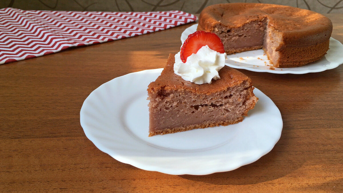 Форму для выпечки смазать растительным маслом и дно застелить бумагой для выпечки. Вылить тесто в форму и разровнять лопаткой. Выпекать при 180 С 35-40 мин.