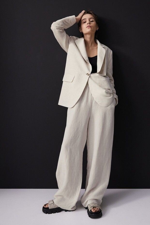 На первом месте у нас будет стоять Костюм из ЛЬНА Лён стоит сейчас на первом месте среди всех новинок. Поэтому, что обсалютно во всех магазинах появились льняные коллекции. Костюм из льна - это креативность. Иметь такие костюмы очень хорошо и функционально в своём гардеробе. Потому, что любые костюмы можно разбивать и носить, как вместе, так и по раздельности. Следующая позиция - это Удлинённая рубашка Каким образом можно использовать такие рубашки? И зачем они вообще нужны? Удлиненные рубашки в 2021 году используются, как второй слой. При покупки удлиненной рубашки нужно обращать внимание, на то чтобы она соответствовала вашему цветовому калориту внешнего гардероба. Третья позиция - это вещь без которой не может обойтись любой летний гардероб, это Базовые топы и футболки ТОПЫ по прежнему сохраняют свою актуальность, так называемые майки алкоголички или топы с выризными рукавами, просто топы с широкими лямками, которые могут быть обтягивающими или полу - обтягиваю