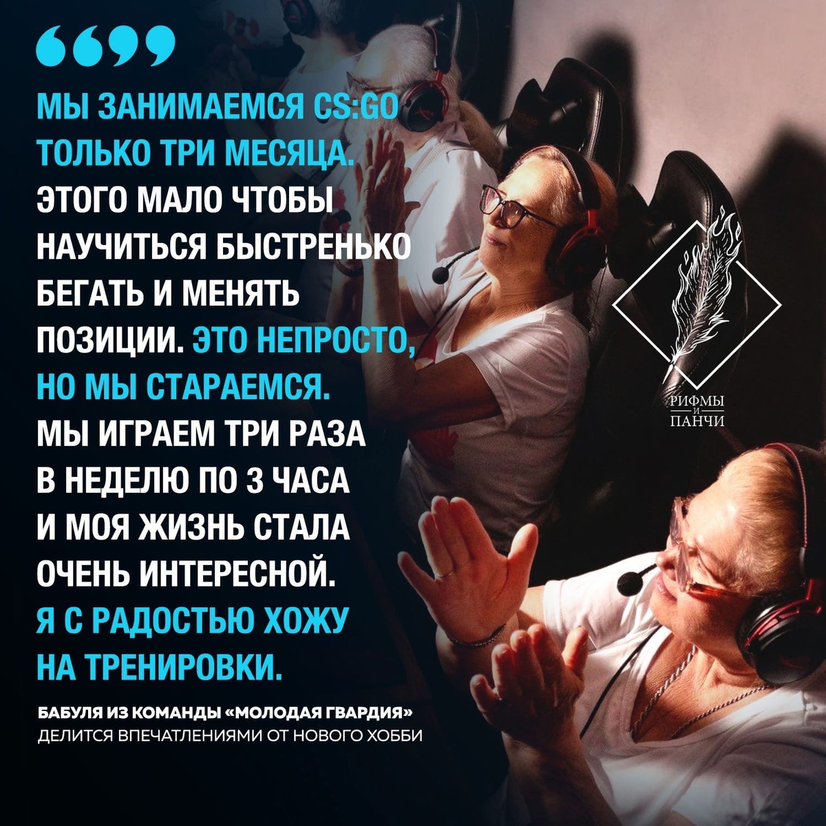 В Одессе появилась команда, в которой играют исключительно люди пенсионного возраста, а название у неё — «Молодая гвардия». Сначала, будущие игроки состава «Молодая гвардия» познакомились на бесплатных компьютерных курсах, а затем уже сформировалась команда по CS:GO. По словам одной из участниц, благодаря курсам они смогли снова почувствовать себя молодыми: Я даже никогда не интересовалась компьютером. Дети там работают, смотрят, а я не подходила. А теперь я вошла в азарт, мне так нравится. От игры я получаю море удовольствия, кажется, что я помолодела на 50 лет.
