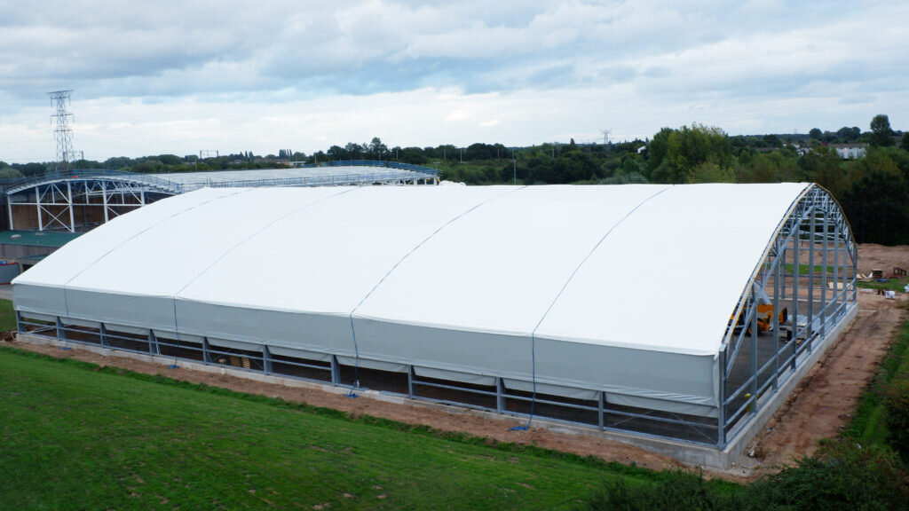 «Открытый» металлокаркас. Дает возможность свободно устанавливать, обслуживать инженерные системы, контролировать состояние металлокаркаса и натяжение тента, в том числе производить необходимые регламентные работы по натяжке тента