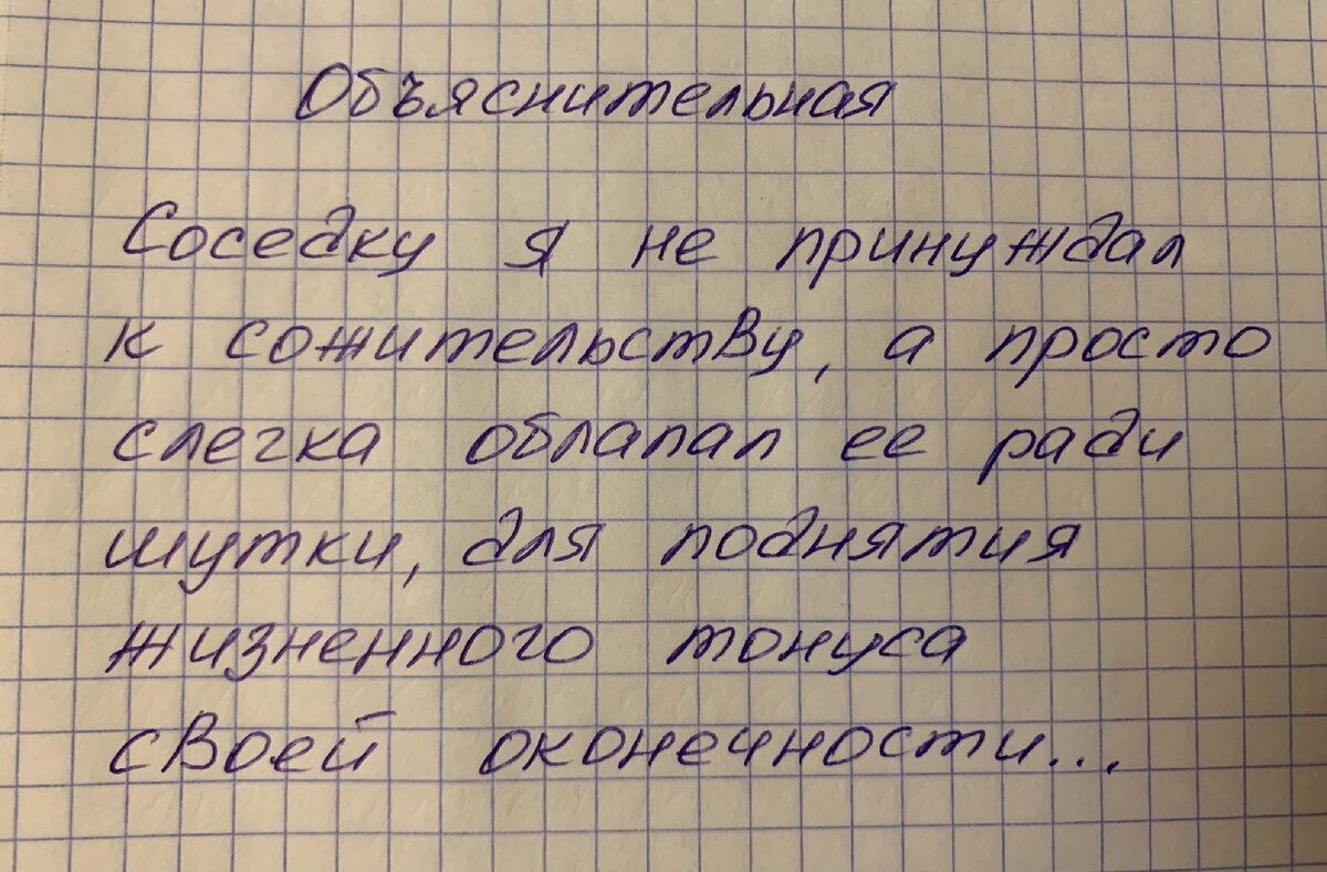 Пишу от руки. На самые интересные темы) Это мой личный эксперимент. Поэтому прошу поддержки. Ну и терпения!) Кстати, это продолжение!) А начало темы тут. Ну и ещё вот тут. Продолжим? Итак. Все ясно понятно. Главное обозначены личные границы) Я иногда даже в среду уже думаю, что это суббота!) правда дома остаться не получается( Домовой вообще всегда чудит! это просто не надо приходить невовремя! В такой отпуск с Конюховым я бы тоже сходила))) Вот это прям аргумент! Даже аргументище!) Ну и вишенка на торте от смелого сотрудника с собственным желанием! А вы писали объяснительные на работе?! Какие причины указывали вы? продолжение следует…. ставьте 👍 и подписывайтесь! За мои старания)