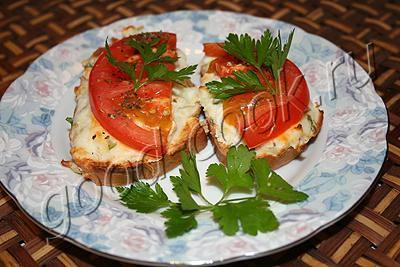 Эта закуска сытная и приятная на вкус - нежно-острая. И готовится очень быстро. СОСТАВ 5~6 ломтиков батона 200г творога 1 помидор 1 зубчик чеснока ~30г сыра петрушка соль при желании - сухой базилик Сыр натереть на средней тёрке, чеснок продавить через пресс, петрушку мелко порезать.