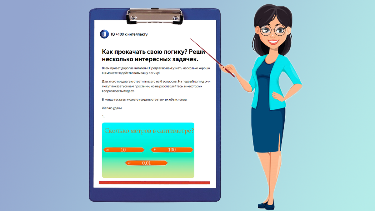 Всем привет дорогие читатели! Предлагаю вам узнать насколько хорошо вы можете задействовать вашу логику! Для этого предлагаю ответить всего на 6 вопросов. На первый взгляд они могут показаться вам простыми, но не расслабляйтесь, в некоторых вопросах есть подвох. В конце теста вы можете увидеть ответы и их объяснение. Желаю удачи! 1. 2. 3. 4. 5. 6. Ответы : 1. Правильный ответ: 0.01
