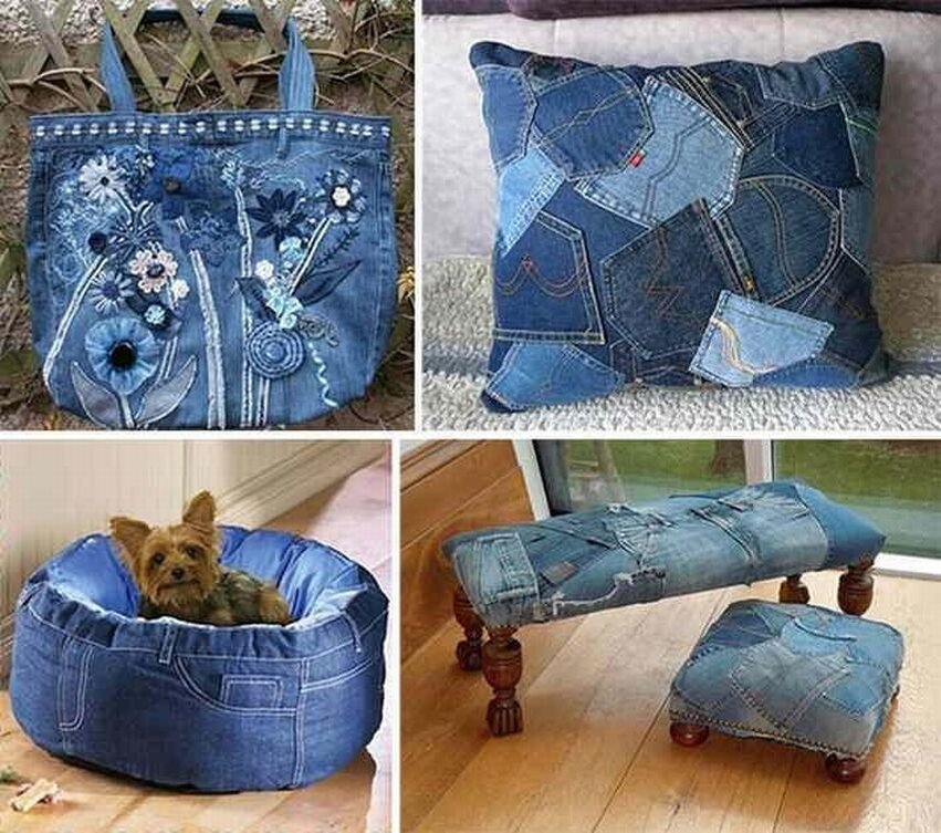 - Если вы уже не носите старые вещи, то можно обшить какую-нибудь мебель, или создать вещь для нашего любимого домашнего питомца!