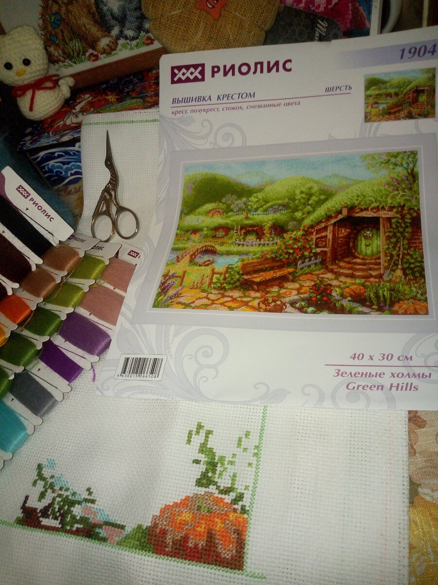Мои долгострой и что с ними делать? Здравствуйте дорогие друзья. Я люблю вышивать, но катастрофический на это не хватает времени. Есть несколько работ которые уже записаны в долгострой. Мои любимые "Зелёные холмы" от Риолис. Увидела картину и влюбилась в неё. Как только получила набор, сразу начала вышивать. Но, вот для меня картина оказалась очень большой размер 40/30см. Нитки шерсть 18 цветов, тоже не очень легко вышиваются. Канва Аида 14 белая, полная зашивка. Потом что то пошло не так, где то ошиблась вышила полный крест, а надо было полукрест. Отложила в долгий ящик. Обязательно конечно вернусь к этому процессу, но не сейчас. Слишком много времени отнимает работа и сад-огород. Ещё один долгострой, так ждала этот набор. Хотелось сразу вышить. Но, оказался слишком тёмный, для глаз тяжело вышивать. Темные цвета сливаются трудно различить где каким цветом вышивать. "Таинственный замок" тоже от Риолис. Размер 40/30см. Канва Аида 14 белая. Нитки шерсть 20 цветов полная зашивка. Вышила