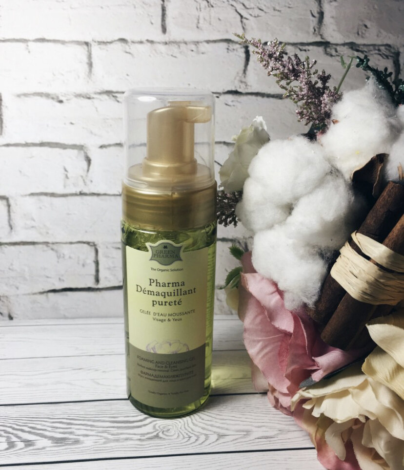 О косметике GREEN PHARMA я слышала очень много хороших отзывов, и когда мне представилась возможность самой попробовать их продукцию, я сразу же не задумываясь выбрала шампунь, кондиционер и мусс для умывая. Сегодня расскажу вам о муссе для умывания GREEN PHARMA очищающий для лица и глаз Demaquillant purite. О ПРОДУКТЕ Объём - 150 мл Цена - 375 рублей Срок годности - 3 года Место покупки - ИМ GREEN PHARMA / Оффлайн можно приобрести в аптеках, либо в крупных интернет-магазинах ВНЕШНИЙ ВИД,УПАКОВКА ТОВАРА Упаковка у мусса стандартная для умывалки. Нет никаких лишних дизайнов, внешне похож на умывалку от Evinal, только выполнен в другой цветовой гамме. Мусс находится в прозрачно-салатовой тубе с прозрачной крышкой и с дозатором, через которую видно остаток и расход средства. Дозатор бутылки имеет продолговатую форма и дырочки внутри, за счет них и происходит превращение жидкости в мусс. Сверху поверхность дозатора ребристая, именно поэтому бутыль с муссом удобно лежит в руке и не выскал