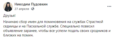 В своих прошлых статьях я рассказывал о Свято-Лукиановой мужской пустыни. Этот монастырь - мой любимый монастырь. Там просто необыкновенно хорошо, там тихо и спокойно - так, как нигде больше. И ещё там необыкновенные монахи - наверно самые бедные, но самые сильные духом. В монастыре нет ценников - все за пожертвования. И при этом монастырь очень бедный... А ещё о. Никодим каждую неделю выставлял вот такие объявления в соц. сетях. И принимал "записочки" совершенно бесплатно. И вот вчера я узнал, что о. Никодим попал в страшную аварию и ушел в вечность. Я его лично не знал, только 1 раз видел в реале, остальное общение было в соц. сетях. И то немного общались. Но почему то очень больно ударило это известие... Наверно, потому что таких людей и таких монахов немного. Его мало кто знал, но кто знал, думаю, сильно переживают утрату... А ещё был недавно такой случай... О. Никодим выставил в ФБ пост, который ввёл в смущение его читателей. Там не было ничего страшного, просто неудачная шутка