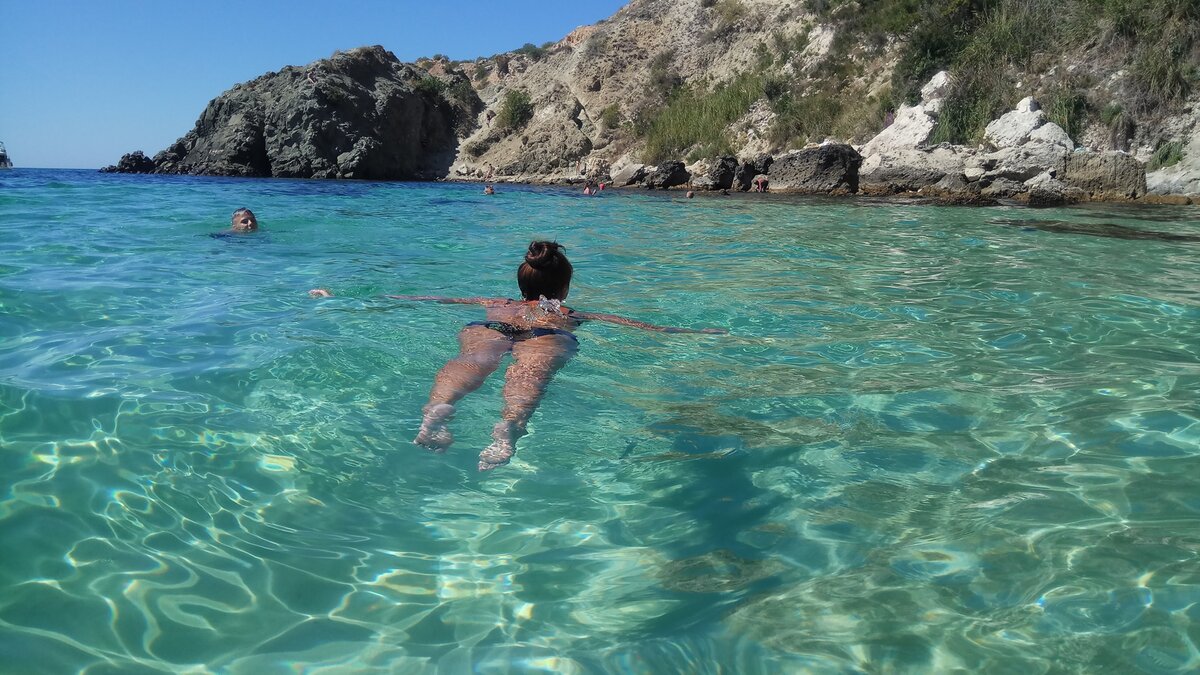 Но качество моря, прозрачность воды того стоят. И экстремального спуска - подъема по канатам. И крупно-каменистого неудобного пляжа. И полного отсутствия инфраструктуры какой-либо. С собой надо брать минимум 2 литра питьевой воды на весь день. На пляже взять ее будет негде. По-быстрому сбегать в магазин или подняться за водой к машине - не получится.