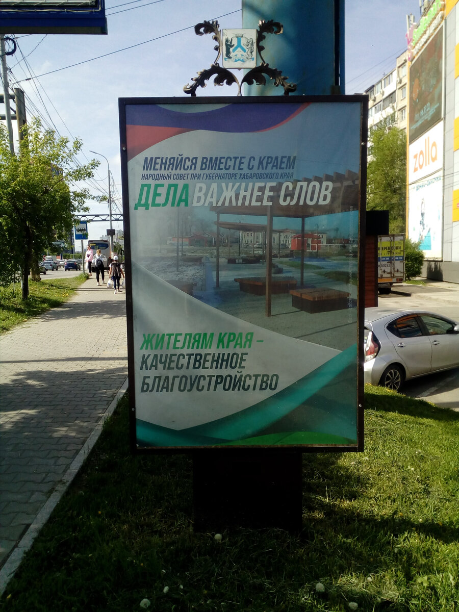 В Преддверии дня города, по Хабаровску стали появляться подобные баннеры "Народного Совета при Губернаторе Хабаровского края" социальной направленности (В названии организации почему то отсутствует ВРИО, но это не в первой). Жителям Края - Качественное Благоустройство, да ещё с каким самонадеянным лозунгом - "Дела Важнее Слов". Ну что, как житель Хабаровска я решил погулять по городу и лично посмотреть на "Дела", а не "Слова" Дегтярева, тем более что в роли Губернатора выбранного всего одним человеком и не Жителем Хабаровского края он уже без малого год, и сваливать проблемы на предшественников не выйдет.