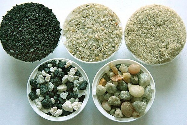 При выборе грунта необходимо учитывать его влияние на состав воды. Химически инертные и кислотоустойчивые: гранит, кварц, базальт.