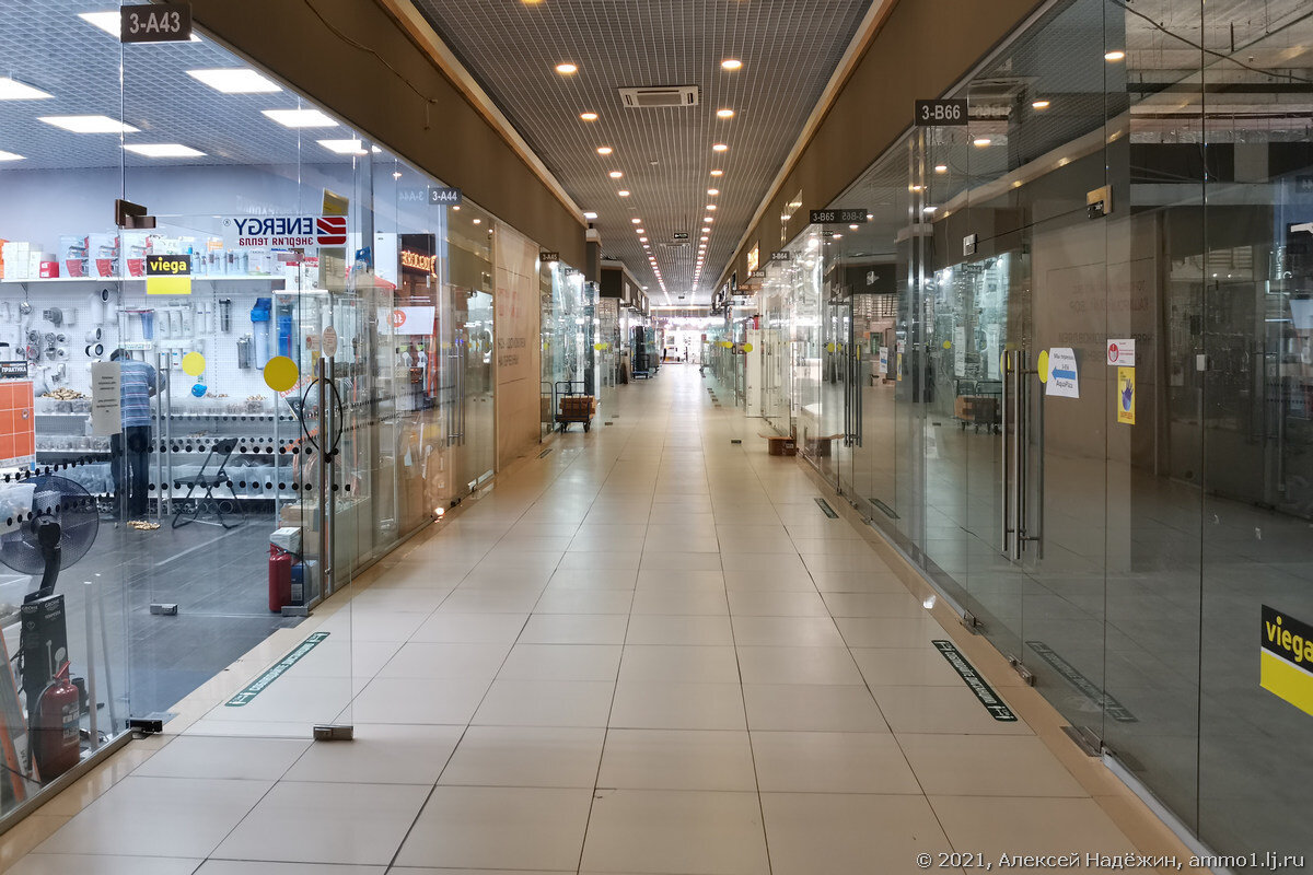 Побывал я в четверг в очень странном месте. Это торговый центр Каширский двор, в котором обитают только продавцы. Покупатели отсутствуют. Насколько я понимаю, когда-то это был большой строительный рынок, теперь два здоровенных корпуса. В первом шесть этажей. Вид от главного входа. Эскалаторы работают, только никого не возят. Продавцы сидят, ждут покупателей. Рядом второй корпус. Три или четыре этажа. На всех надземных этажах мебель. Покупателей - ни одного. На подземном -1 этаже что-то типа хозяйственного рынка. Там встречаются отдельные покупатели. На улице остатки былого рынка. Там хоть какие-то признаки жизни. Несколько покупателей что-то покупают. Я туда поехал, чтобы посмотреть живьём на сантехнику для дачи и решить для себя несколько вопросов. Оказалось, что внутри корпуса продаётся только дорогая сантехника и ничего из того, на что я хотел посмотреть, там просто нет. Спросил стоимость одного унитаза - назвали цену ровно вдвое выше его реальной цены. Может быть в выходные там нар