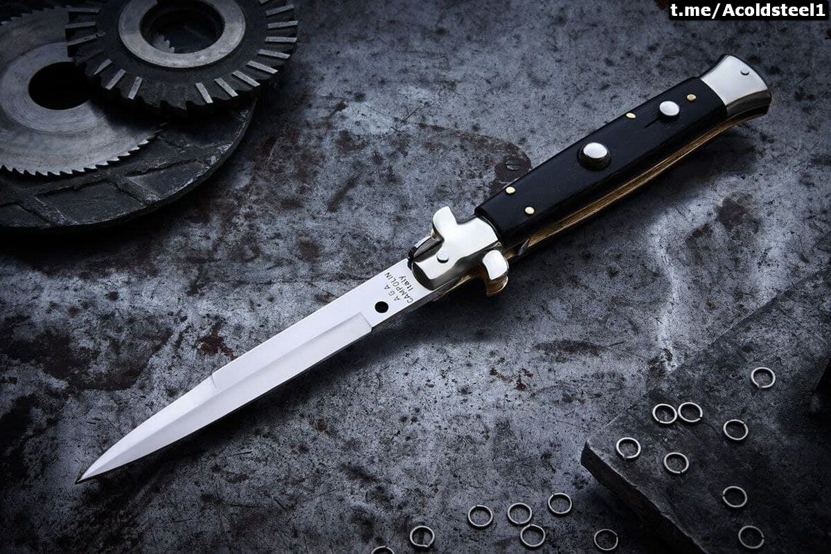 Имеет "кровавую" репутацию, благодаря массовому использованию таких ножей криминальными структурами. Что не так уж и удивительно. Ведь клинок был создан исключительно для поражении живой цели колющими ударами. А конструкция стилета лучше всего подходит для этих целей. Выкидные стилеты такого типа были впервые представлены ещё в 19 веке. Но массовое распространение получили лишь после окончания Второй Мировой Войны, когда многие американские солдаты, возвращаясь домой, привозили их в качестве сувенира из Италии. Компактность ножа, наличие "гарды", конструкция стилета и способность мгновенно обнажить клинок - сделало его очень мобильным и эффективным ножом для нападения в городской среде. Ввиду такой приспособленности, автоматические стилеты быстро получили распространение среди преступного мира. Его легко было спрятать, быстро обнажить, а эффективное нанесение колющих ударов даже не всегда требовало правильного хвата рукояти. Её "Т-образное" основание сделано таким образом, что оно на