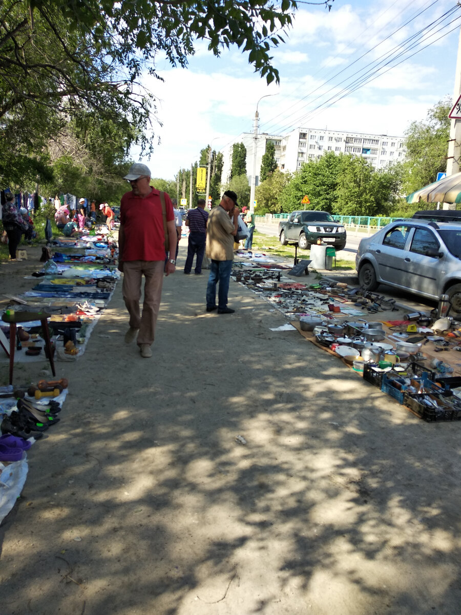 Мои спонтанные покупки на блошином рынке в последние дни мая. Волгоградская жара. Приветствую вас, дорогие читатели! Вот и подошёл к концу последний месяц весны этого года. Весна- период беспокойный, большинство из жителей едут в это время в выходные на дачи, убрать, посадить,полить. Что ни говори,а дача кормит. Однако не поредели ряды на " птичьем" рынке.И в прошедшие выходные было опять полно народа. Бойко шла торговля летними мужскими брюками,конечно по сказочно- низкой цене. В магазин многие теперь не могут позволить себе сходить из- за дороговизны. Покупали журналы "Бурда" за прошедшие года. Цена 80 руб за один журнал. В них есть выкройки и можно запросто сшить себе любую модель, выкройки изготовлены с высокой точностью и сшитые по ним изделия имеют хорошую посадку по фигуре. На глаза попалась книга 50-х годов о том, как научиться шить на полную фигуру. Мне нравятся женственные фасоны,которых теперь не увидишь на женщинах. Все в майках,брюках,шортах. Хотелось,чтоб эта старинная м