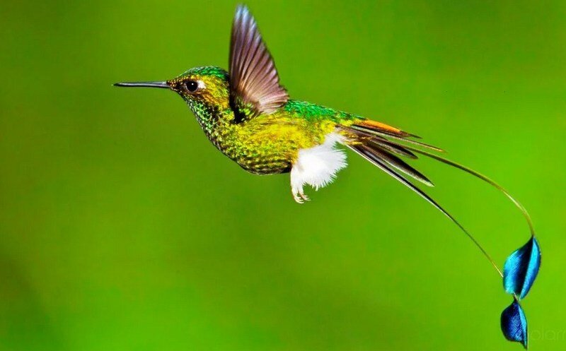 Лоддигезия – птичка из рода колибри. Она обитает на склонах Кордильеры дель Колан. Предпочитает обитать в лесных зарослях над уровнем моря. Длина его тела вместе с хвостом не превышает 15 см. Имея на конце хвоста оперение в виде опахала, самцы, во время брачного сезона, привлекают им самок. После спаривания самка строит гнездо из растительных волокон и мха, скрепляя это всё паутиной. Тем самым по мере роста птенцов, гнездо расширяется. Питаются они нектаром растений, добывая его из цветков своим длинным и тонким языком. Также, в полёте они могут ловить насекомых. Гондурасский изумруд – одна из самых редких птиц в мире, она также, как и лоддигезия – относится к роду колибри. Размер тела не превышает 10 см, крупно прокрыто пёрышками, а переливы окраса напоминают изумруд. Её клювик составляет 1/3 часть её туловища. Обитает гондурасский изумруд в лесах и зарослях, предпочитает избегать влажные джунгли. Длиннохвостый ткач, также известный как «длиннохвостая вдова». Размеры не превышают 20 с