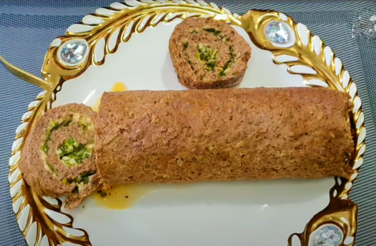ВАМ ПОНАДОБИТСЯ: 300-400 граммов говяжьего фарша 300 граммов куриного фарша 1 чайная ложка молотой паприки 1 чайная ложка соли с горкой Перец черный молотый 1 средних размеров репчатая луковица 1 чайная ложка с горкой прованских трав 1 яйцо 150 граммов твердого сыра 1 пучок петрушки 1 пучок зеленого лука 2-3 средних зубчика чеснока ПРИГОТОВЛЕНИЕ: 1 средних размеров луковицу и 2-3 средних зубчика чеснока натереть на терке, или измельчить блендером. В миске смешать 300-400 граммов говяжьего фарша, 300 граммов куриного фарша, 1 чайную ложку соли с горкой, соль по вкусу, 1 чайную ложку паприки, 1 чайную ложку с горкой прованских трав, тертый лук, 1 яйцо. 150 граммов твердого сыра натереть на крупной терке. Мелко порезать пучок петрушки и пучок зеленого лука. Фарш выложить на пергаментную бумагу для выпечки, смазанную растительным маслом. Разровнять. Сверху посыпать тертым сыром и нарезанной зеленью. Аккуратно скрутить всё в рулет, постепенно приподнимая бумагу с одной стороны и так же пост