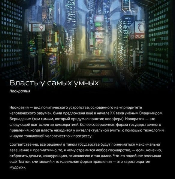 Города -государства. Это и есть наше будущее в виде анклавов. Однако все эти анклавы будут вплетены в Общую Сеть правовых взаимоотношений и информационных потоков, т.е. речь идёт о государстве-корпорации, которая состоит из кучи монастырей-орденов (городов-княжеств). И всё это обслуживается киберократией.