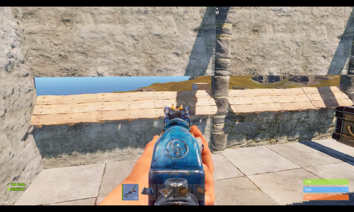 Салам растерам и сегодня мы поговорим о багах, фишках в Rust 1.фишка фишка заключается в том что бы поставить таблички под наклоном вот как то вот так сама фишка уже прикольная но самый сок то что оружие при смерти застревает в табличках 2.как застать противника врасплох для того что бы оказаться в такой позиции откуда противник не будет вас ждать нужно подойти к зданию подняться к двери с зелёной карточкой и сделать как показано на скрине ниже воля вы открыли дверь 3.воруем чинук для того что бы своровать чинук нужно сделать 3 вещи 1.машину 2.подождать чинук 3.застроить его как же его своровать ? да все очень просто садитесь в машину и просто толкаете его из РТ потом когда уже РТ не бьёт застройте его 4.бессмертие на большой нефтевышке вы скажите чё за бред а я скажу пользуйтесь пока не пофиксили есть одно место где урон не проходит если подробнее скрин ниже 5.и последняя фишка понравиться тем у кого есть DLC с лежаком я назвал его "невидимка") как это выглядит в