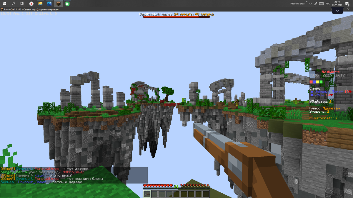 Дело было так. Я недооценил остановку на карте и валял дурака всю игру. Под конец нас сломали, и поскольку близился Дед Матч, я начал строить дорогу на центр. Но тут произошел казус. Мой товарищ случайно... Его оружие уничтожает стекло. Как раз на нём я и стоял. Он хотел поставить блок, а вышел выстрел.