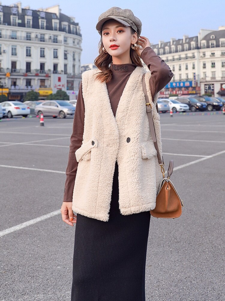 Элегантный женский жилет, зимний жилет из овечьей шерсти, женское пальто, новое длинное без рукавов