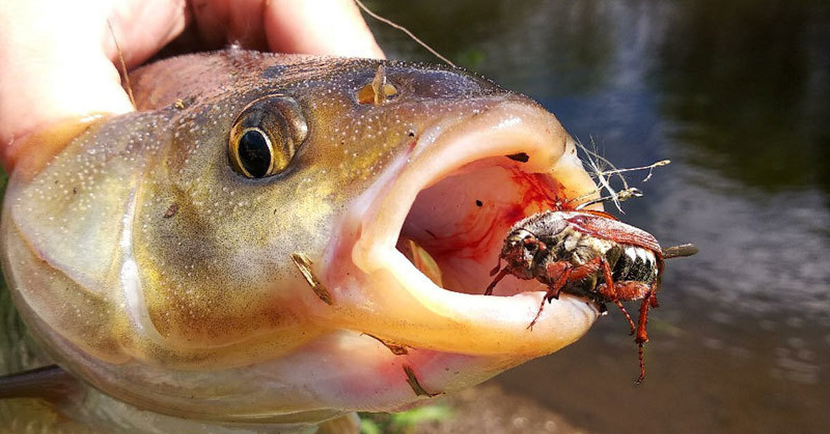 Бывает, что он неохотно берет свободно плывущее насекомое. Тогда выручает удерживание насадки в одной точки или ее легенькие подергивания, имитирующие движения хруща. Это позволяет привлечь внимание рыбы и раззадорить ее на более решительную хватку.