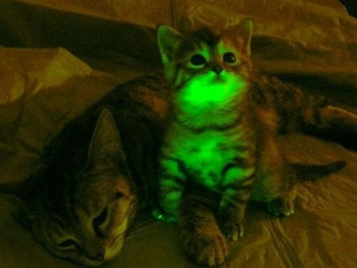 ЦРУ в 60-е годы потратили 20 млн $ на обучение кошек шпионить за СССР. Они внедряли им в ухо микрофон, а в основание черепа радиопередатчик. Первый такой шпион как-то пережил операцию, но на первом же задании его сбило такси. Источник В США более 86 000 человек ежегодно получают травмы, спотыкаясь о своих кошек и собак. Кошачьи почки настолько эффективны, что они могут фильтровать морскую воду, делая ее пресной и пригодной для питья. Вы знали, что учеными были созданы светящиеся кошки? В их гены был добавлен белок медузы, который отвечает за биолюминесценцию.