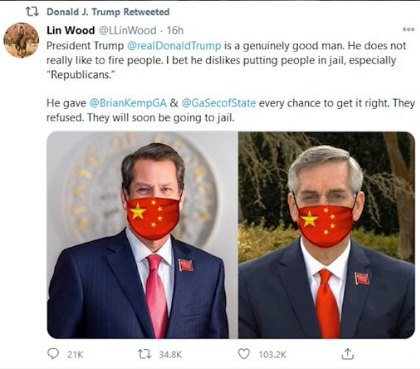 Трамп ретвитить пост своего адвоката по поводу вероятного ареста губернатора Джорджии. Но это всё фигня. Самое главное - КИТАЙ НАПАДАЕТ НА АМЕРИКУ!! ВСЕ НА ЗАЩИТУ США! Где же Маккарти, который защитит США от комми, которыми управляет Китай?! ))))) Насколько я понимаю, сейчас Трамп каждый третий пост будет мутить с тезисом о Китае, как мировом зле. Ему срочно нужно объединять свой электорат вокруг идеи борьбы с внешним врагом. Ну и желание зачистить Америку от внутренних "врагов народа". Чья пропаганда победит, и кто применит силу первый? Сейчас американцам так пропиарят мозг про внешнюю угрозу (Китай и Россия), что это будет покруче коронавирусной эпидемии. Из психоза в психоз! Скажем так, после этого 2021 года американцам нужна будет очень мощная психическая поддержка, чтобы вернуть их в реальность. Надеюсь, что Америка не превратится в Руанду. Что американцы латинос и американцы негроиды не начнут тяпками мочить белых. А в ответ белые будут устраивать поздки "зачистки" с М 16 на терр