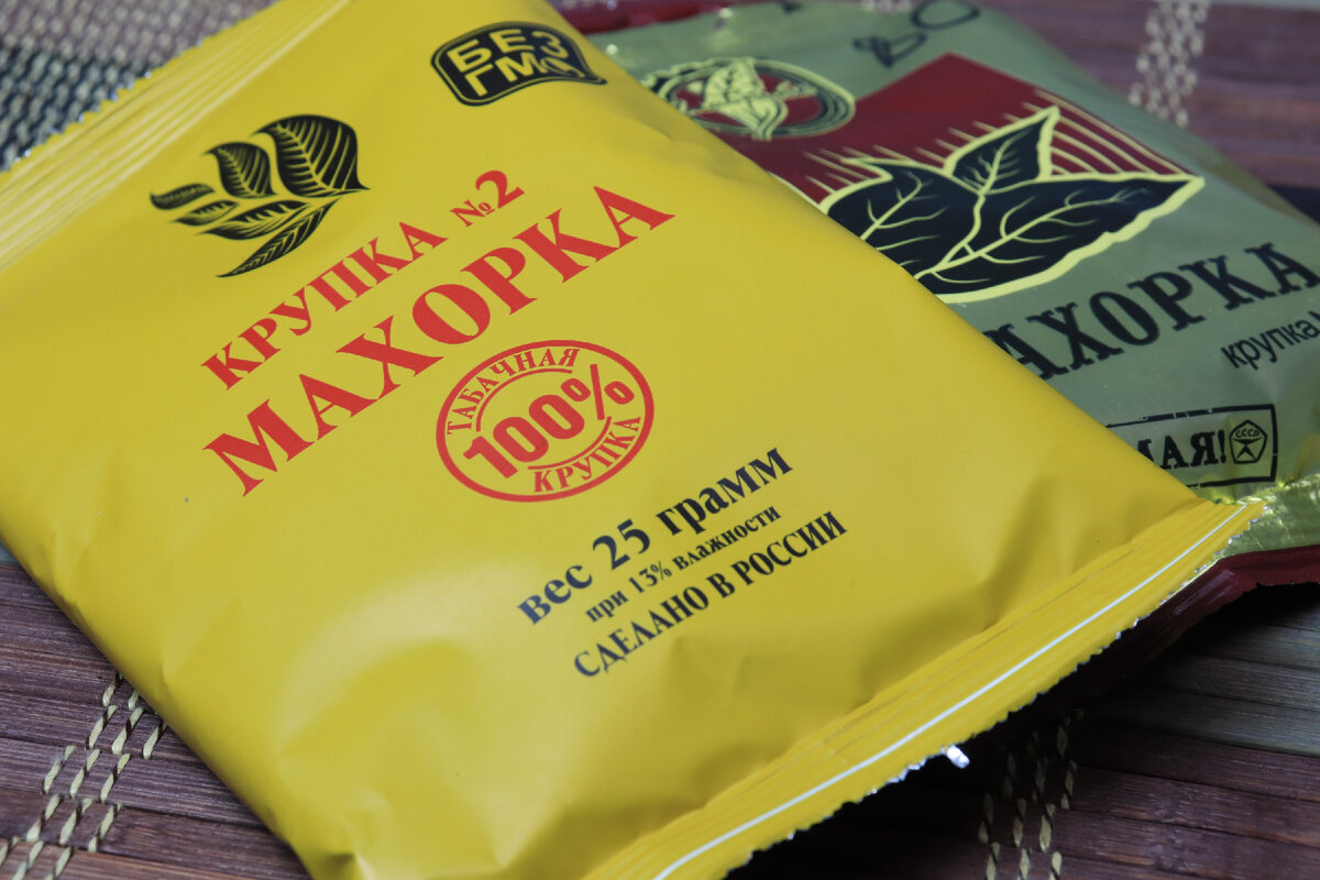 Махорка во времена Советского Союза была неотъемлемой частью рациона курильщика, особенно в деревнях и у солдат. Многие ошибочно считают, что махорку курили только солдаты во время Великой Отечественной Войны, но на самом деле это не так. Насколько мне известно, махорку клали в пайки аж до девяностых годов! Помимо этого, махорка пользовалась спросом и у обычных гражданских курильщиков, и была своего рода аналогом табака. До сих пор помню, как деды делали "козьи ножки" и пыхтели махру! Махорка продается и в наше время, и сегодня мы рассмотрим ту продукцию под названием "Махорка", которую можно найти в табачных магазинах. В моем городе продается только два вида Махорки от разных производителей: Крупка 3 от "Главтабак", Самара, и Крупка 2 от "Адванс Табакко Фактори", Татарстан. На удивление, ни одна из продающихся Махорок официально курительной не является! Об этом свидетельствуют многочисленные надписи на упаковках: На махорке "Крупка 2" надпись достаточно сдержанная: "для сельскохозяйс