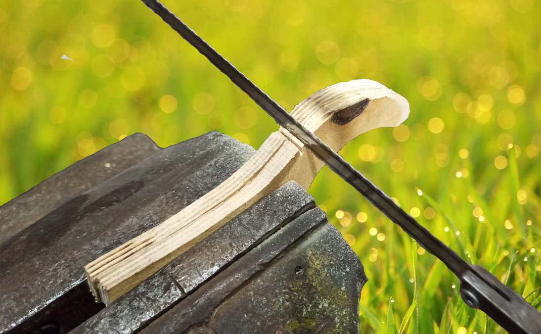 Остаётся самое малое это сделать надпил сверху на заготовках. Для этого зажимаем их в тиски, чтобы они не двигались и пропил был синхронный.