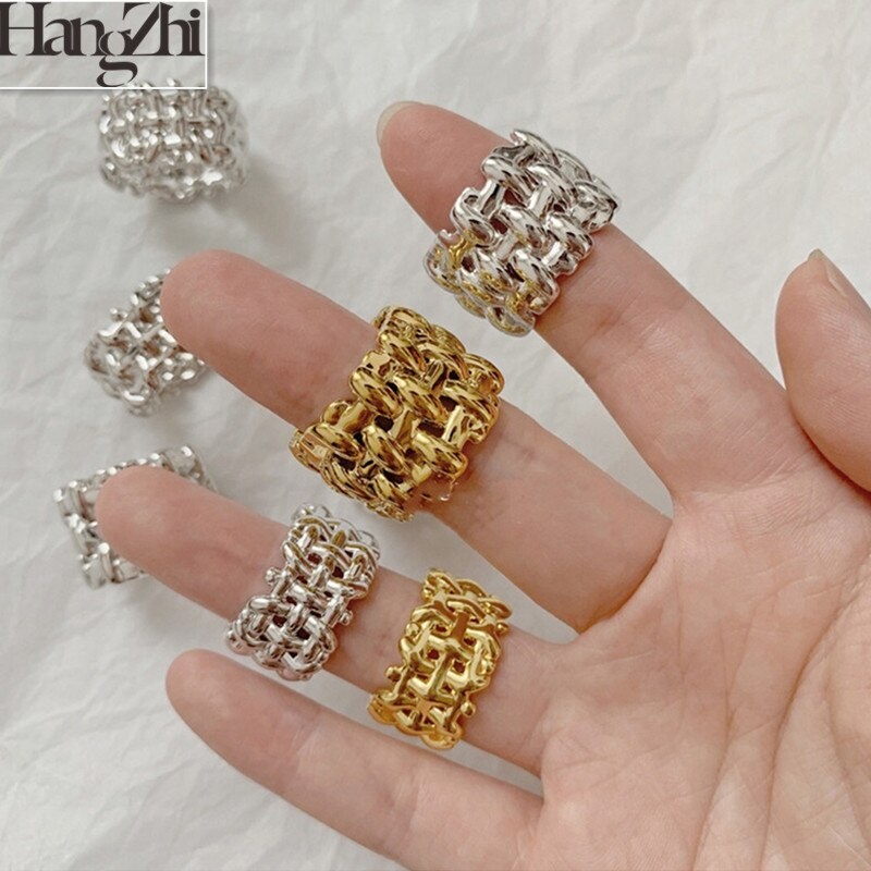 Hangzhi 2020 новое ретро золотое металлическое большое геометрическое глянцевое широкое плетение