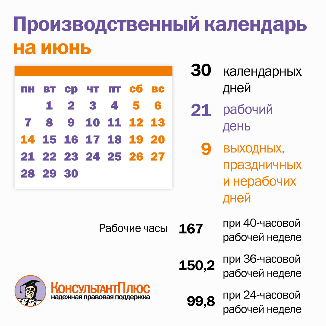 Производственный календарь на июнь