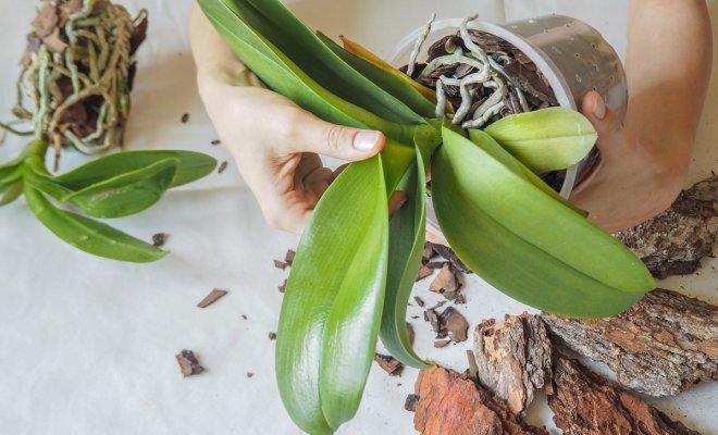 После того как фаленопсис отцветет и ему станет мало места в горшке, для растения следует подобрать новую тару. Желательно, чтобы она была прозрачной, чтобы вы смогли контролировать влажность субстрата и следить за состоянием корней цветка.